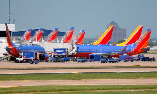 Southwest Airlines jets sit parked at gates at Love Field airport in Dallas.The Canadian Press