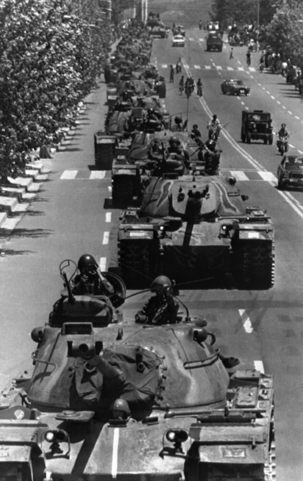 South Korean army tanks withdraw from downtown Gwangju, South Korea, in 1980, after government troops recaptured the city, a hub for student-led protests against the dictatorship of Chun Doo-hwan.The Associated Press