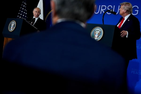 U.S. President Donald Trump and Russia's President Vladimir Putin at a news conference in Anchorage, Alaska, on Friday.Julia Demaree Nikhinson/The Associated Press
