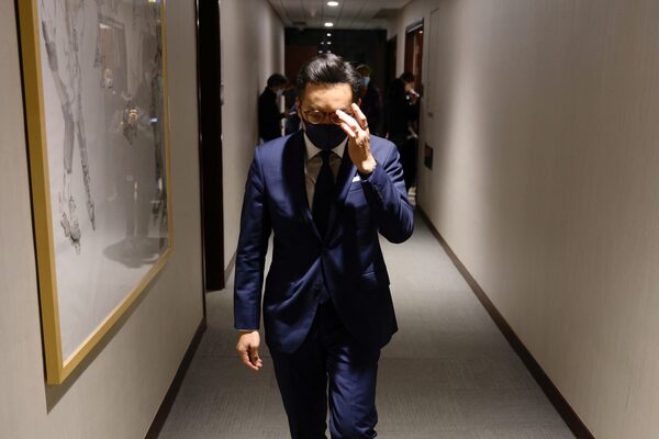 Former pan-democratic legislator Alvin Yeung Ngok-kiu leaves a news conference after he was disqualified when Beijing passed a new resolution, giving city authorities new powers to curb dissent, in Hong Kong, China.TYRONE SIU/Reuters