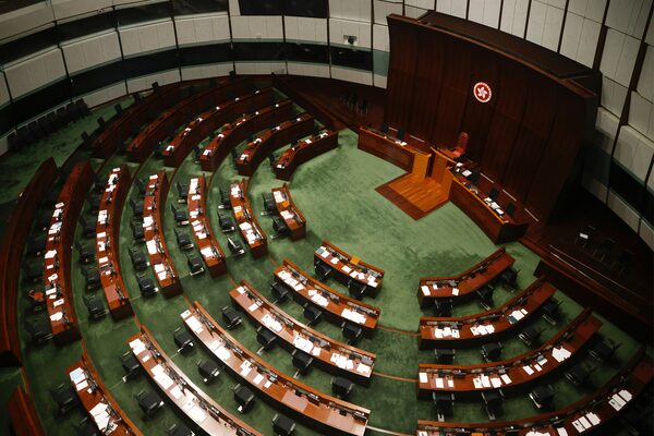 Legislative Council chamber is seen after Alvin Yeung Ngok-kiu, Kwok Ka-ki, Kenneth Leung and Dennis Kwok were disqualified when Beijing passed a new dissent resolution in Hong Kong, China.TYRONE SIU/Reuters