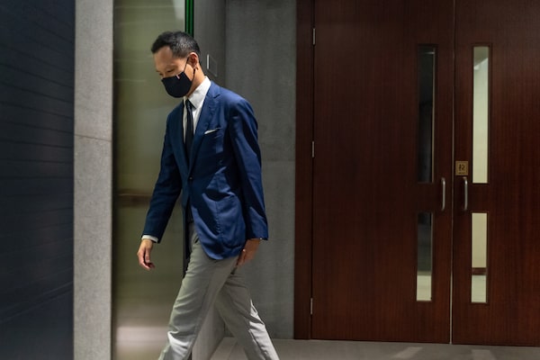 Pro-democracy lawmaker Dennis Kwok Wing-hang leaves after attending a press conference at the Legislative Council Building in Hong Kong, China.Anthony Kwan/Getty Images