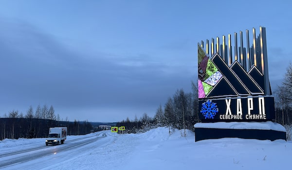 A sign for the settlement of Kharp, where Russian opposition politician Alexey Navalny serves his jail term in the IK-3 penal colony, in the Yamal-Nenets Region, Russia on December 29, 2023.STRINGER/Reuters