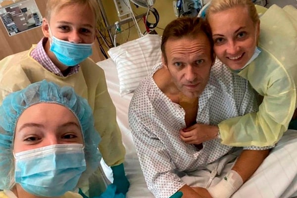 From his instagram account Alexei Navalny, shows himself, centre, and his wife Yulia, right, with medical workers in a hospital hospital in Berlin, Germany on Sept. 15, 2020 after he recovered from being poisoned with a Soviet-era nerve agent, German authorities confirmed.The Canadian Press