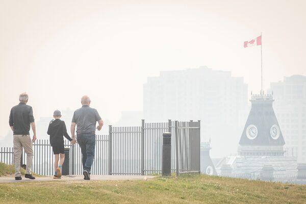 Smoke from wildfires burning across both Ontario and Quebec blanket the skyline in Kingston, Ont., Tuesday, June 6, 2023.Lars Hagberg/The Canadian Press
