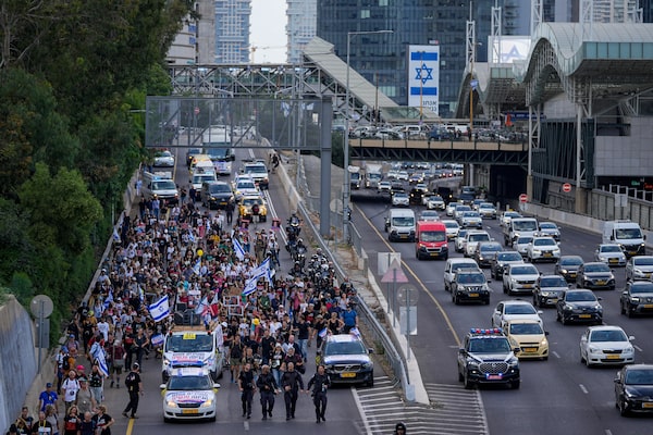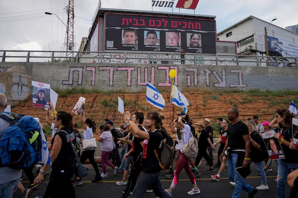 "March for the Hostages" from Tel Aviv to the Prime Minister's Office in Jerusalem.Ohad Zwigenberg/The Associated Press