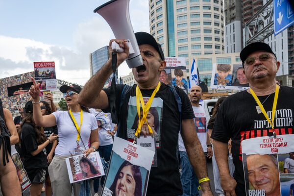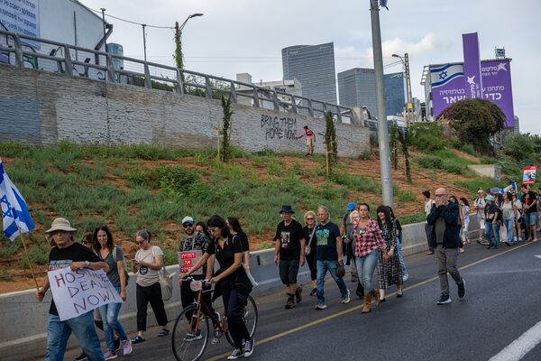 “March for the Hostages” from the Museum of Tel Aviv plaza in Tel Aviv to the Prime Minister’s Office in Jerusalem.Alexi J. Rosenfeld/Getty Images