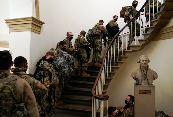 National Guard members walk the stairs at the U.S. Capitol, in Washington.JOSHUA ROBERTS/Reuters