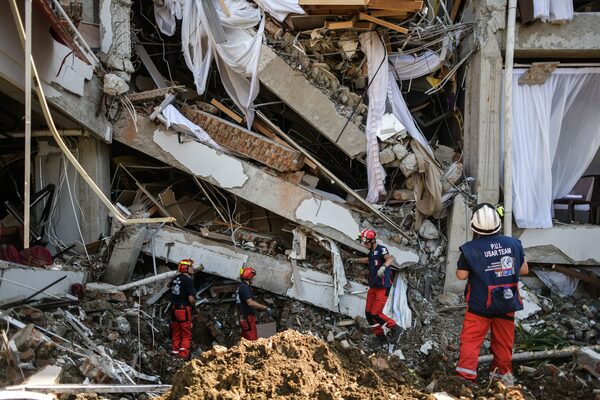 French Emergency Firefighters prepare to enter the badly damaged Mercure hotel for search and rescue operations in Palu.MOHD RASFAN/AFP/Getty Images