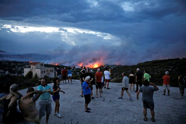 People watch a wildfire raging in the town of Rafina, near Athens.ALKIS KONSTANTINIDIS/Reuters