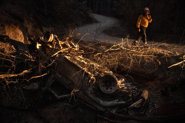 Wreckage of a fire truck on Thursday, January 2 near Lake Conjola, New South Wales state.MATTHEW ABBOTT/The New York Times News Service