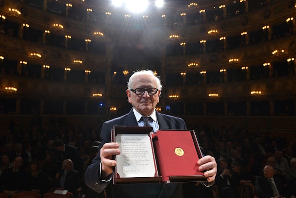 Photo taken on December 3, 2012 shows Italian-born French designer Pierre Cardin posing with his Lion of Venice award for his artistic achievements at La Fenice theatre in Venice.VINCENZO PINTO/AFP/Getty Images