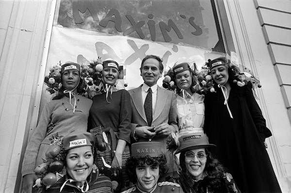 Photo taken on November 25, 1977 shows French designer Pierre Cardin surrounded by "Catherinettes" in front of his new shop Maxim's in Paris.PIERRE GUILLAUD/AFP/Getty Images