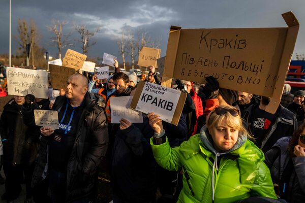 Volunteers offer transportation and accomodation to Ukrainian refugees who have arrived in Przemsyl, eastern Poland, via the Medyka pedestrian border crossing on February 26WOJTEK RADWANSKI/AFP/Getty Images