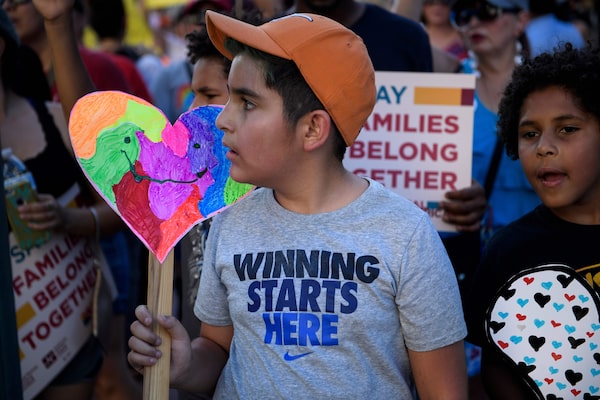 Children march during a rally in El Paso, Tex., to protest the separating of children from their parents.BRENDAN SMIALOWSKI/AFP/Getty Images