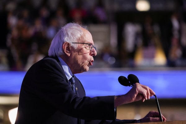 U.S. Sen. Bernie Sanders speaks at the Democratic National Convention in Chicago, Illinois, on Tuesday.Alyssa Pointer/Reuters