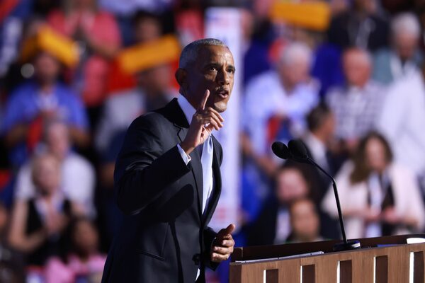 Former U.S. president Barack Obama speaks on stage during the second day of the Democratic National Convention at the United Center on Aug. 20, in Chicago, Illinois.Joe Raedle/Getty Images
