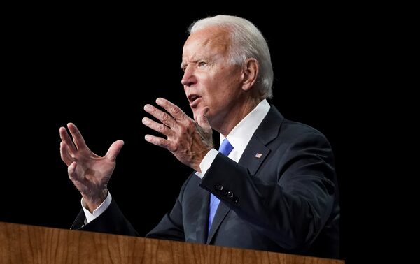Former U.S. Vice-President Joe Biden delivers a speech for the largely virtual 2020 Democratic National Convention from the Chase Center in Wilmington, Del., on Aug. 20, 2020.KEVIN LAMARQUE/Reuters