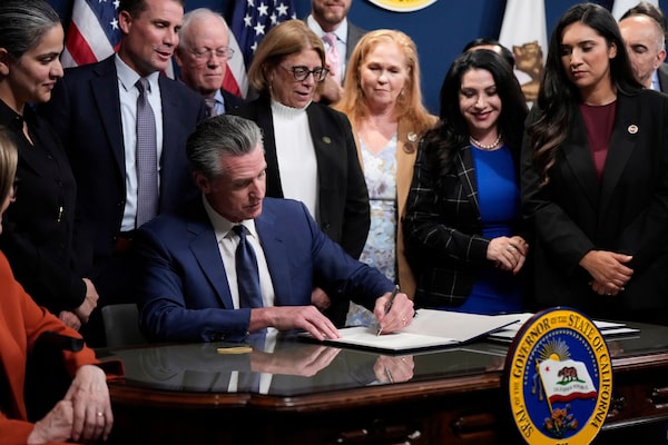 California Governor Gavin Newsom signs legislation calling for a special election on a redrawn congressional map on Thursday in Sacramento.Godofredo A. Vásquez/The Associated Press