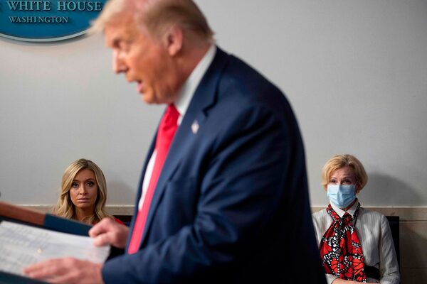 White House Press Secretary Kayleigh McEnany, left, sits next to coronavirus response co-ordinator Deborah Birx as President Donald Trump speaks at the White House on July 22, 2020.JIM WATSON/AFP/Getty Images