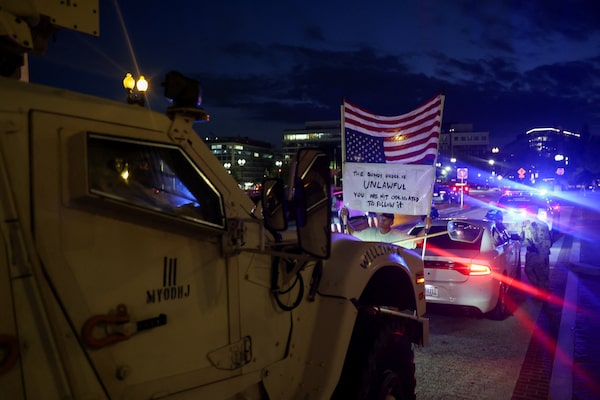 Joey Jebari, a university philosophy lecturer and one of the protesters, framed Mr. Trump’s intervention as the latest in a series of attacks on Washington. He pointed to mass layoffs of civil servants earlier this year and the President’s approval of a congressional cut to the civic budget this spring.