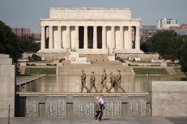 National Guard soldiers carrying assault rifles stand as sentinels around the monuments. The Metropolitan Police Department and at least six federal agencies set up evening checkpoints on busy streets and patrol nightlife districts. U.S. Park Police have cleared away homeless encampments. And officers from Immigration and Customs Enforcement are arresting suspected undocumented immigrants.