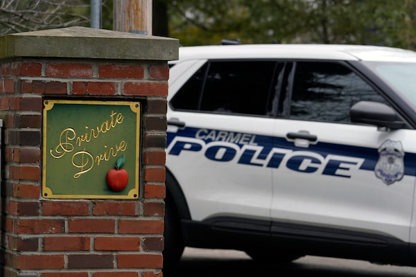 Carmel, Ind. police secure the entrance to the neighborhood of former U.S. Vice President Mike Pence's Indiana home, Feb. 10 in Carmel, Ind.Michael Conroy/The Associated Press