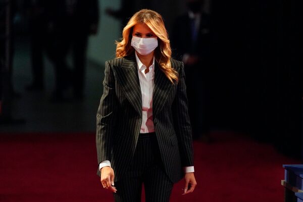 First lady Melania Trump walks toward her seat ahead of the first presidential debate at Case Western University and Cleveland Clinic, in Cleveland, Ohio, on Sept. 29, 2020.Julio Cortez/The Associated Press