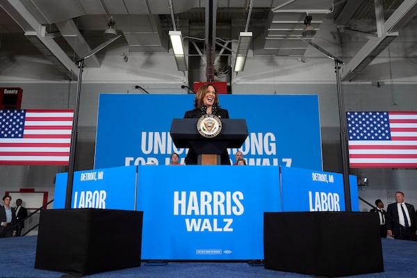 Democratic presidential nominee Vice President Kamala Harris speaks at a campaign event at Northwestern High School in Detroit, on Sept. 2.Jacquelyn Martin/The Associated Press