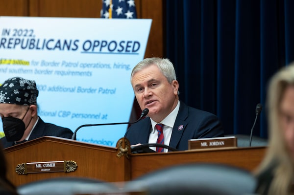 House Oversight Chairman Rep. James Comer opens a House Committee on Oversight and Accountability hearing on the border, in Washington on Feb. 7.Kevin Wolf/The Associated Press