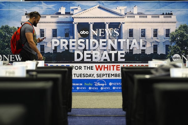 Signage at the media filing center ahead of tonight's presidential debate between Republican presidential candidate former President Donald Trump and Democratic presidential nominee Vice President Kamala Harris.Pablo Martinez Monsivais/The Associated Press