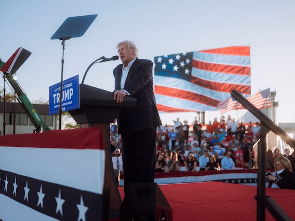 Former President Donald Trump speaks during a campaign rally at Waco Regional Airport, in Waco, Texas on March 25.CHRISTOPHER LEE/The New York Times News Service