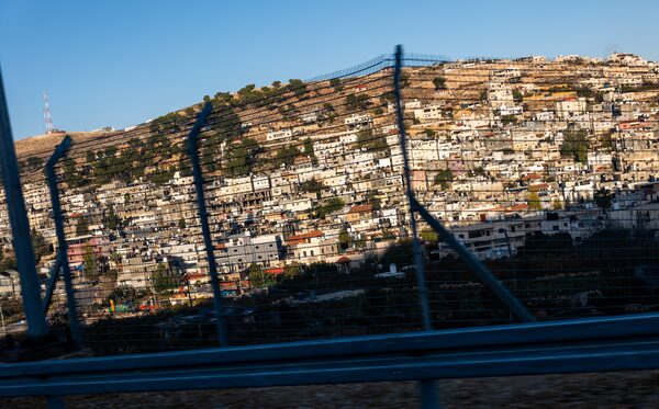 Israeli settlements sit behind a wire security fence along a road outside of Hebron during increased tensions between Palestinians and Israelis in Hebron, West Bank, on Dec. 2.Spencer Platt/Getty Images