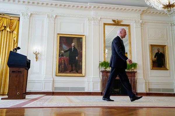 U.S. President Joe Biden walks from the podium after speaking about Afghanistan from the East Room of the White House on Aug. 16, 2021, in Washington. The President said he was forced to choose between withdrawing or escalating the conflict.Evan Vucci/The Associated Press