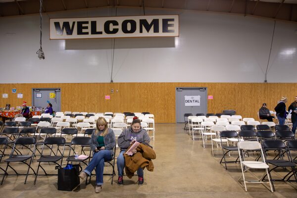 In the predawn darkness of an Appalachian winter, almost 400 people crowd around the front doors of a cavernous metal building at the Rockingham County fairgrounds waiting for a rare opportunity to get health care. They spent the night in the adjacent gravel lot, sleeping in their cars or pacing in freezing temperatures, staking out a place in line for the two-day free clinic.
