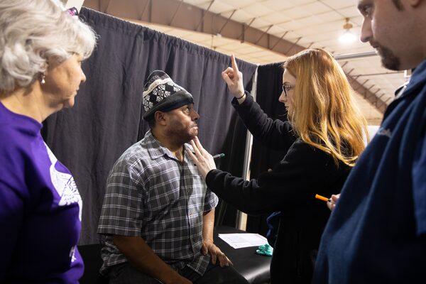 Amanda Miller, a certified physician assistant, checks the eye movements of Eduardo Aguilar after he complained about recent loss of vision.