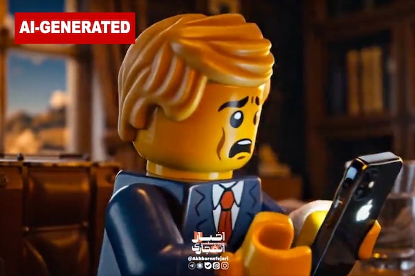 In one video clip, posted online shortly after the U.S. and Iran reached a ceasefire in their five-week-old war, a Lego-inspired version of President Donald Trump sits on the floor of his bedroom with a white flag of surrender, crying and eating a taco, a reference to the phrase “Trump Always Chickens Out.”