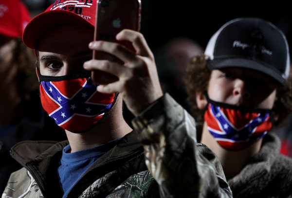 Masked Trump supporters listen to him speak in Valdosta on Dec. 5.Jonathan Ernst/Reuters