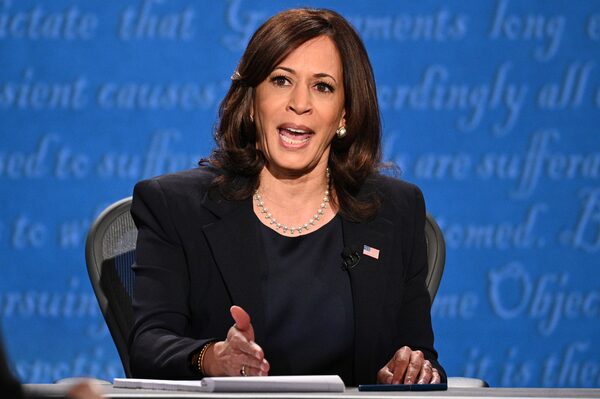 In this file photo taken on Oct. 7, 2020, U.S. Democratic vice-presidential nominee Kamala Harris speaks during a debate in Kingsbury Hall, at the University of Utah, in Salt Lake City.ROBYN BECK/AFP/Getty Images