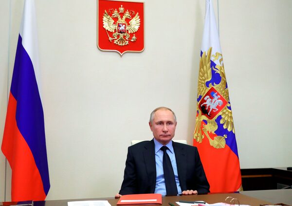 Russian President Vladimir Putin chairs a Security Council meeting via video conference at the Novo-Ogaryovo residence outside Moscow, Russia, Jan. 22, 2021.Mikhail Klimentyev/The Associated Press