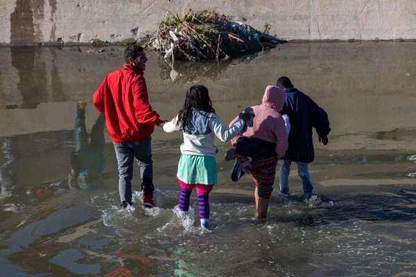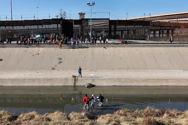 Migrants cross the Rio Grande into El Paso, Texas, from Ciudad Juárez, the Mexican city where many Venezuelan asylum seekers wait in hope of entering the United States.John Moore/Getty Images