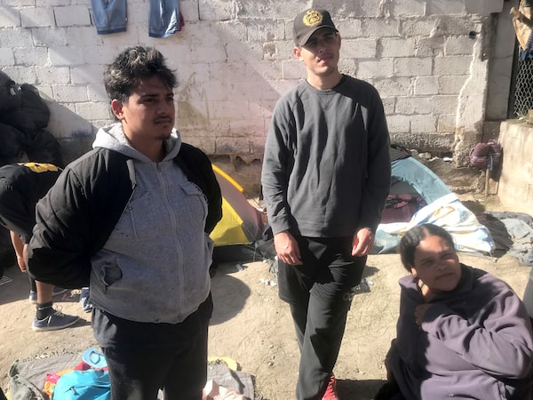 Oscar Silva, left, and Zulimar Orocopeay, right, are among the Venezuelan migrants camping near the border.Adrian Morrow/The Globe and Mail