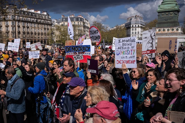 Demonstrators take part in the "No Kings" protest in Paris on Saturday.Aurelien Morissard/The Associated Press