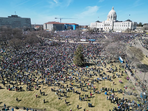 A drone view of demonstrators congregating at the Minnesota State Capitol in St. Paul, Minn., on Saturday.Erica Dischino/Reuters