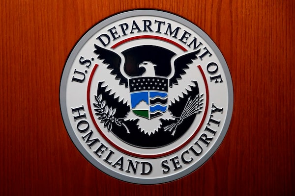 In this June 28, 2019, file photo the Department of Homeland Security seal is seen during a news conference in Washington.The Associated Press