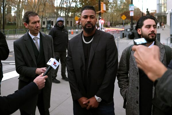 Cleveland Guardians pitcher Emmanuel Clase de la Cruz exits the Brooklyn Federal courthouse following his arraignment on charges of sports betting and money laundering conspiracy in Major League Baseball games in Brooklyn, N.Y. earlier this month.Brendan McDermid/Reuters