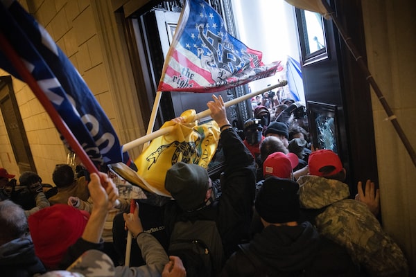 A pro-Trump mob breaks into the U.S. Capitol on January 6, 2021 in Washington, DC. Congress held a joint session today to ratify President-elect Joe Biden's 306-232 Electoral College win over President Donald Trump.Win McNamee/Getty Images