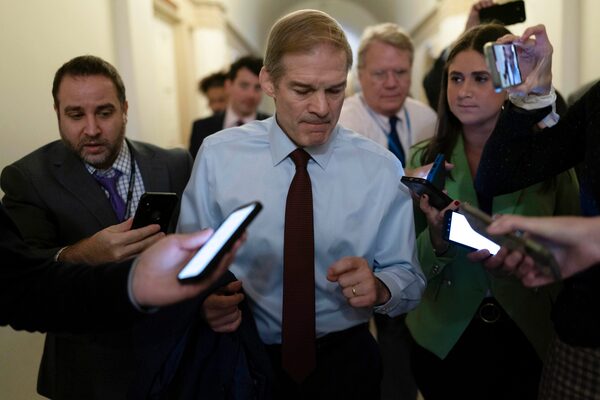Rep. Jim Jordan speaks to reporters as he leaves a meeting at the U.S. Capitol, in Washington, on Oct. 18.Jose Luis Magana/The Associated Press