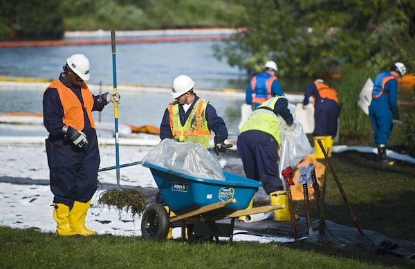 Workers clean up the Kalamazoo River in Marshall, Mich., in 2010.Kevin Van Paassen/The Globe and Mail