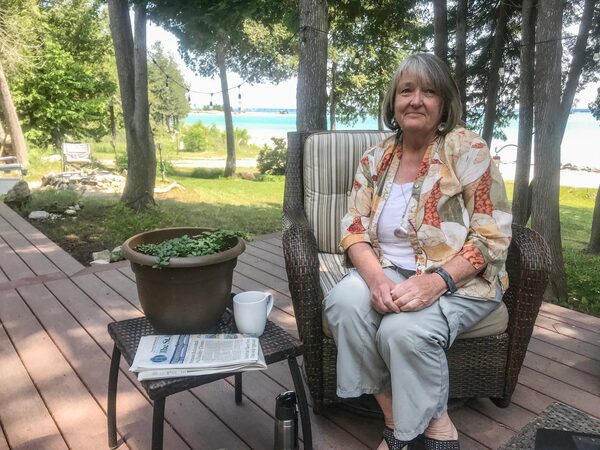 From her veranda overlooking the Straits of Mackinac, where Lakes Huron and Michigan meet, the 70-year-old retired nurse practitioner surveys the aquamarine waters shimmering under a golden Thursday afternoon sun. Forests of pine and birch hug the banks.
